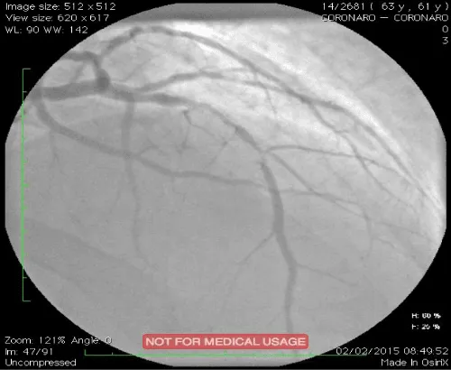 Figure 1: Drug-eluting in-stent restenosis of left anterior descending coronary artery in a patient with a positive stress echocardiography.