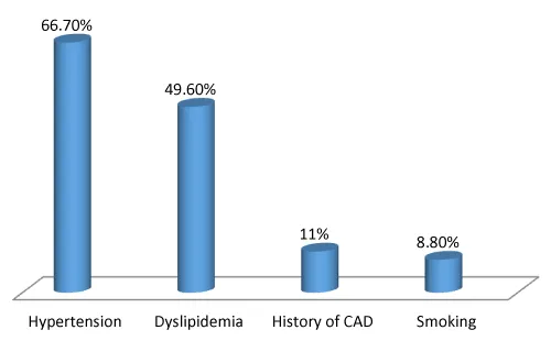 Twenty (44.5%) patients had no other cardiovascular risk factors other than s and 33.3% of patients had at least one cardiovascular risk factor among high blood pressure (hypertension), Smoking, dyslipidemia and antecedent of coronary disease.