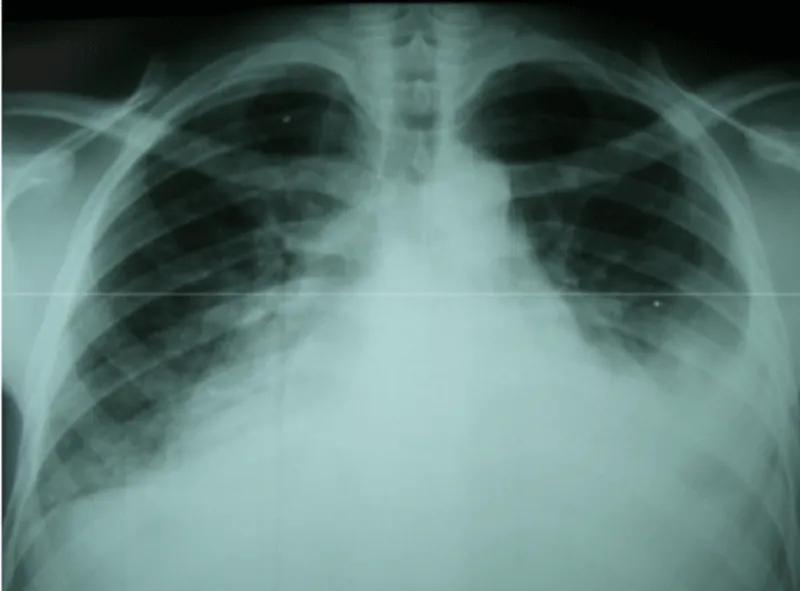 Figure 1: Chest X-ray showing alveolar edema, pleural effusion and enlarged cardiac silhouette.