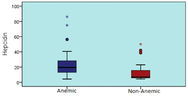 | Table 1: Hepcidin values in case and control groups. | ||||||||||