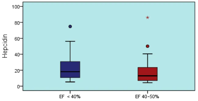 | Table 3: Hepcidin level changes according to EF levels. | |||||||