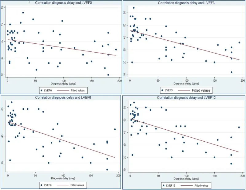 Correlation between diagnosis delay and echocardiographic predictors of non-recovery of myocardial function