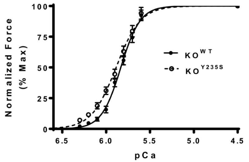Figure 8: Force-pCa relationship between KOWT and KOY235S of cMyBP-C, from Doh, et al. [11].
