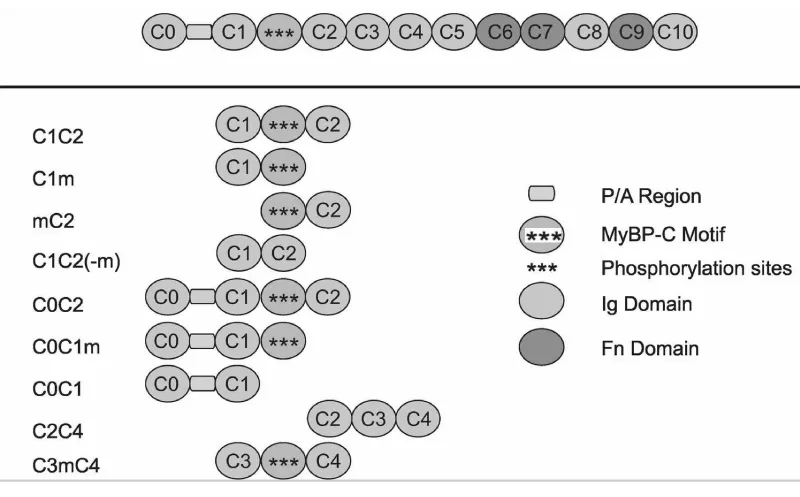 Figure 12: Modular Domain Organisation of Cardiac cMyBP-C and the fragments synthesised [15].