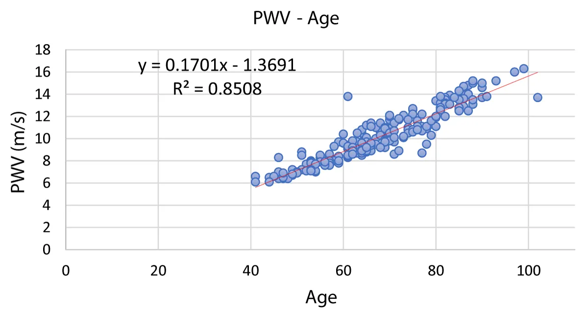 Correlation between pulse wave velocity with age