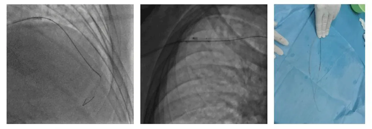 Figure 3: Rupture of the hypotube and guiding catheter deep intubation.
