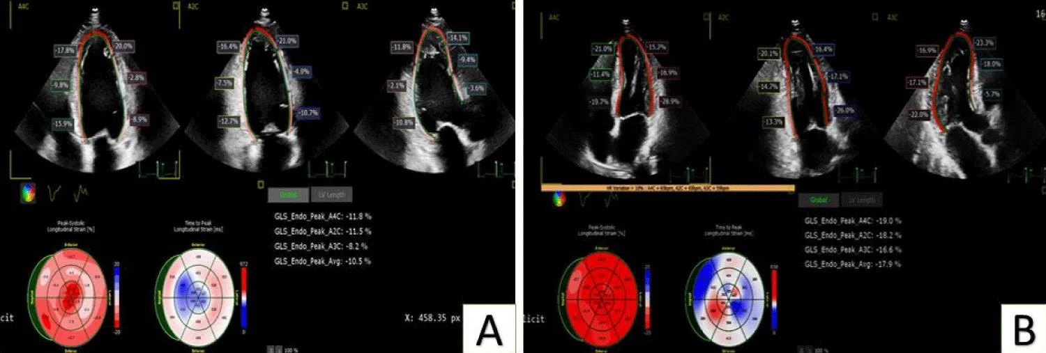 2D-STE is becoming a more sensitive and objective technique to evaluate LV systolic and diastolic function [4,5]. Additionally, even in cases where overall LVEF is preserved, myocardial dysfunction can still occur and may be linked to compromised LV longitudinal deformation [6,12].