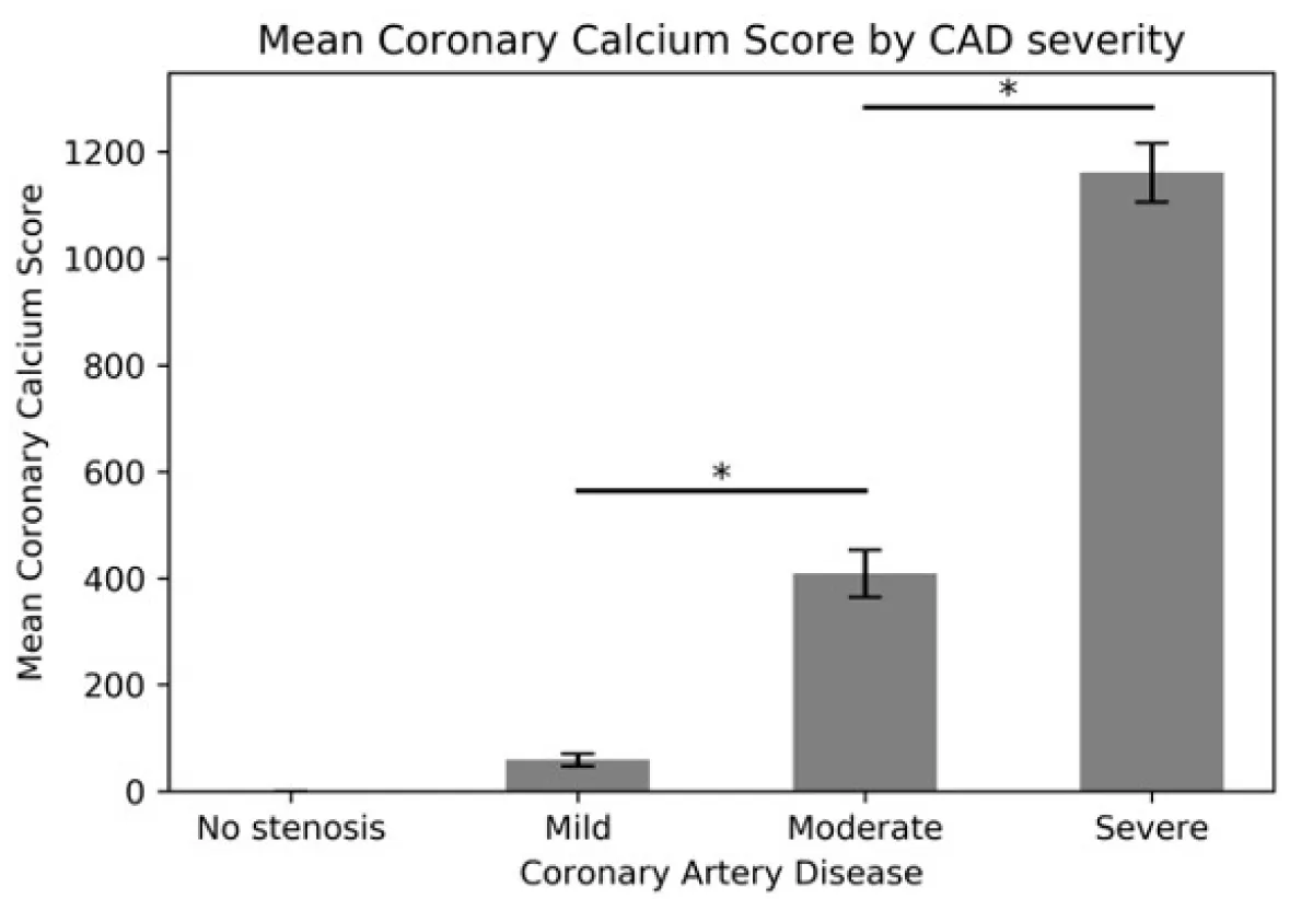 A supplementary limitation arises from the fact that the assessment of CAD severity was conducted by radiologists who possess prior knowledge of the CCS results. This circumstance potentially introduces bias into the interpretation of CAD, as the radiologists may inadvertently weigh their assessments in light of the CCS findings. Consequently, there exists a possibility of overestimation or underestimation of CAD severity, influenced by the pre-existing knowledge of the CCS results. Such an influence could introduce variability and compromise the accuracy of CAD interpretation in this study. Further exploration and consideration of strategies to mitigate the impact of this potential bias are warranted for future investigations in this domain.