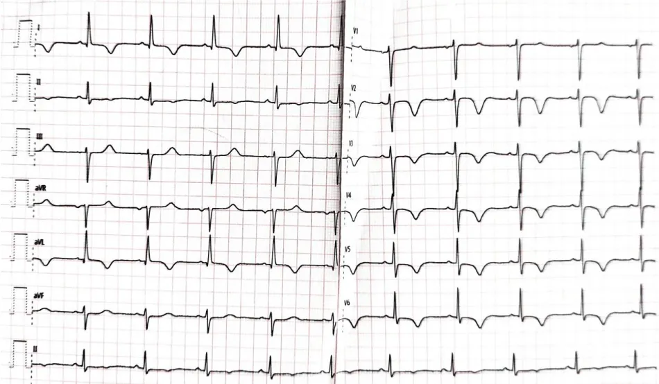 A 54-year-old patient presented on July 12, 2023, the study patient complained of palpitations and chest heaviness. Having previously purchased the Spandan ECG device developed by Sunfox Technologies, a single-channel 12-lead ECG device capable of detecting different types of arrhythmias and STEMI/NSTEMI, he utilized it in an emergency to take his ECG. The ECG detected anteroseptal and lateral wall ischemia (Figure 1).